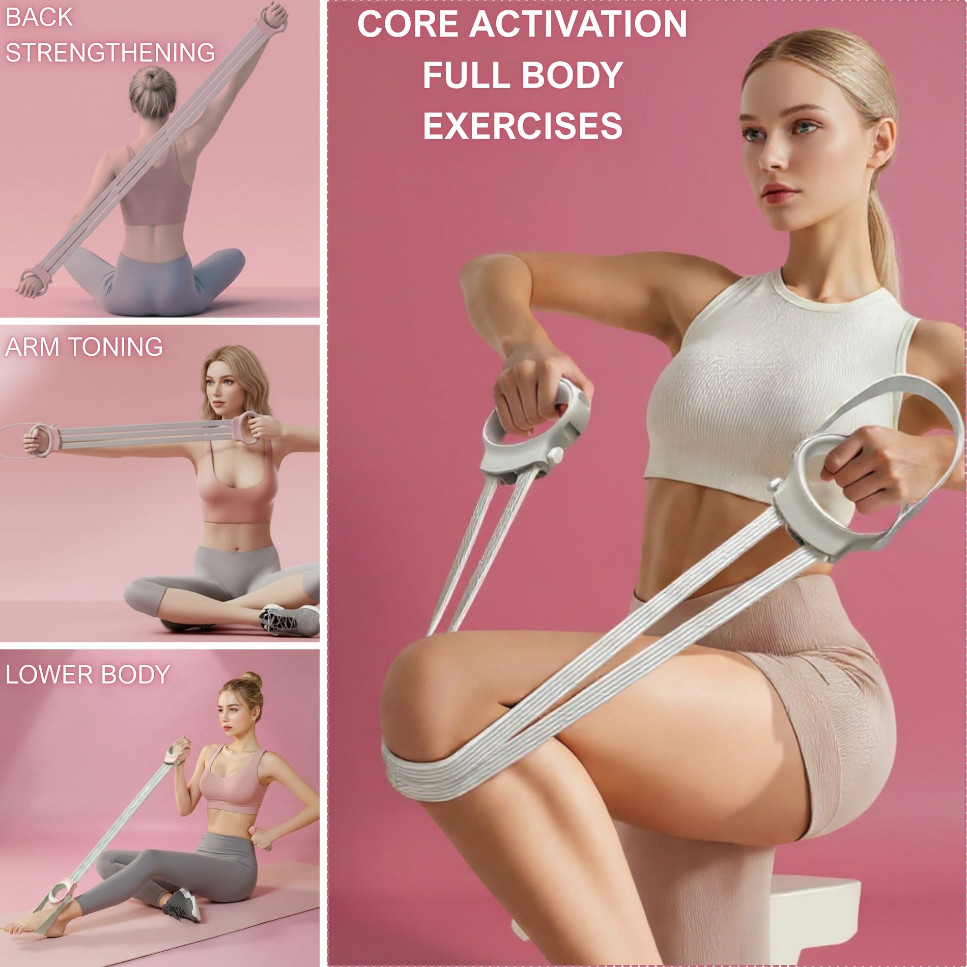 Natural Latex Resistance Bands Set - 6X Stretch Heavy Duty Figure 8 Pull Rope with Foot Pedal Trainer
